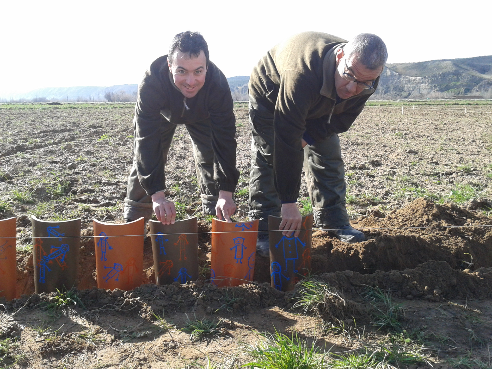 Queremos que esta parcela quede bonita por lo que la estamos decorando, en la foto estamos colocando unas tejas que se decoraron durante un voluntariado de Enagás en el Taller de Manualidades de La Fundación.