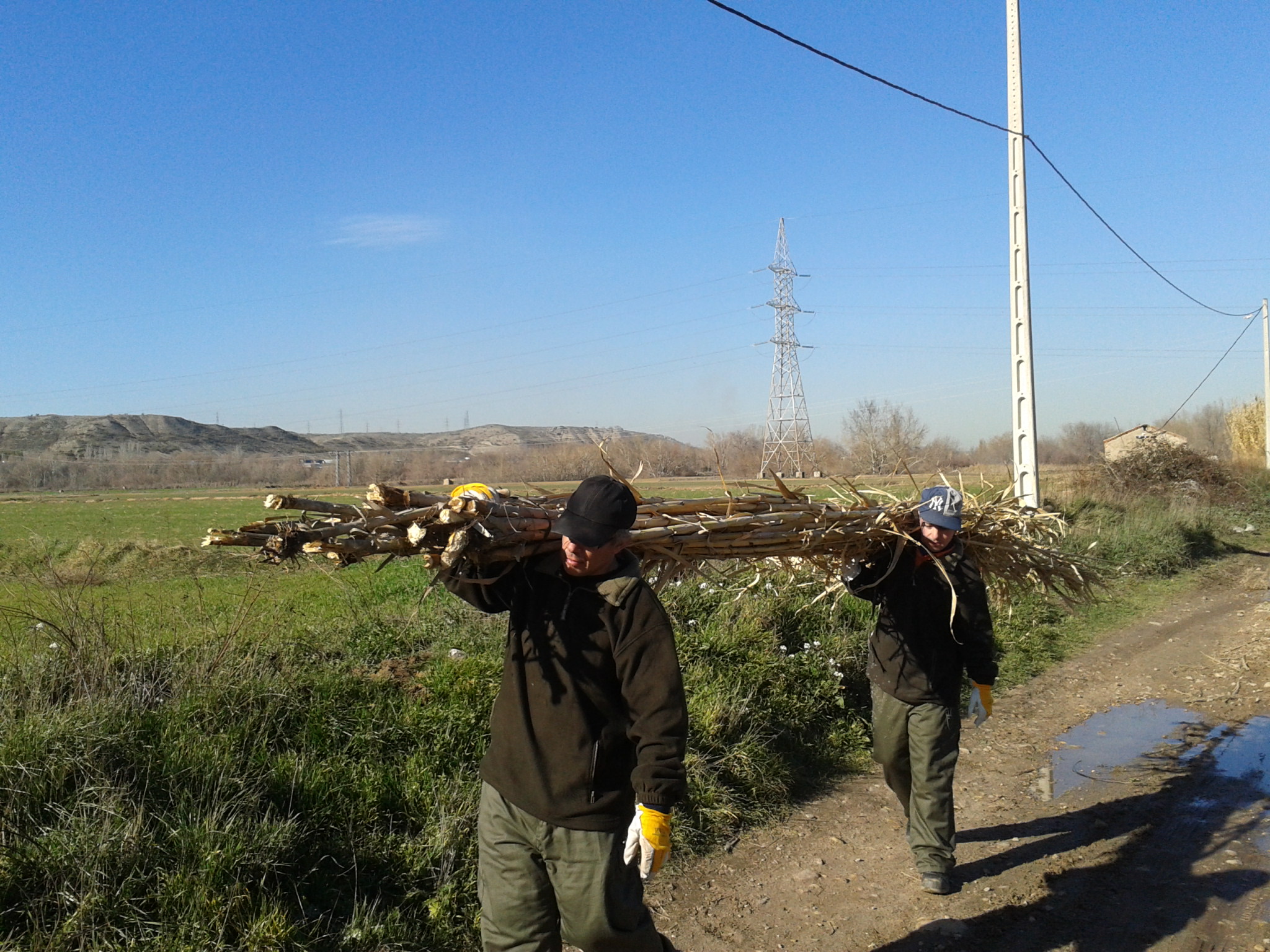 Previendo la llegada de la primavera, en la que las tareas en la huerta aumentan, estamos recogiendo cañas para que sirvan de tutores. Una de las variedades de guisantes es de mata alta y necesitará un soporte para crecer. Además, las cañas son una especie invasiva, con lo que con esta tarea contribuímos a la conservación del paisaje tradicional de la zona.