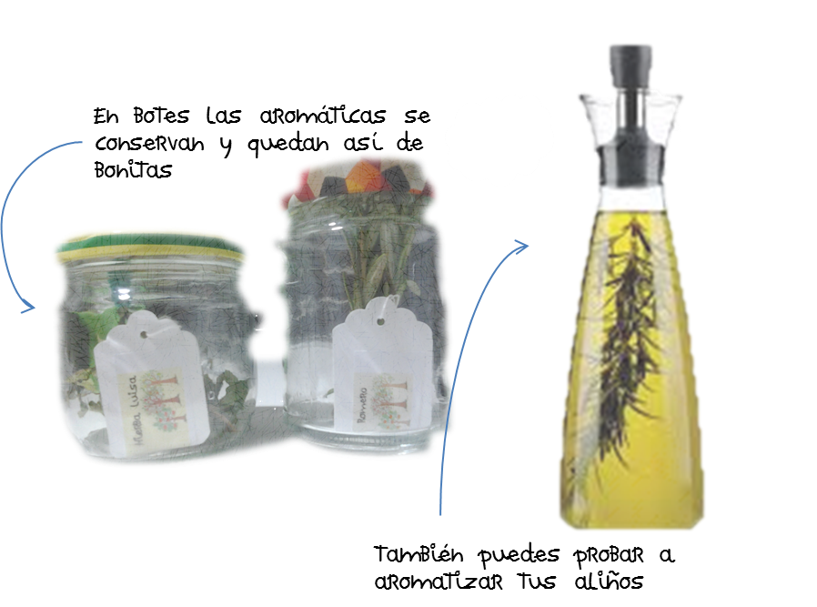 Además, algunas de ellas como el romero, el tomillo o la ajedrea las podéis meter en vuestra aceitera, de esta forma disfrutaréis de aliños más sabrosos.