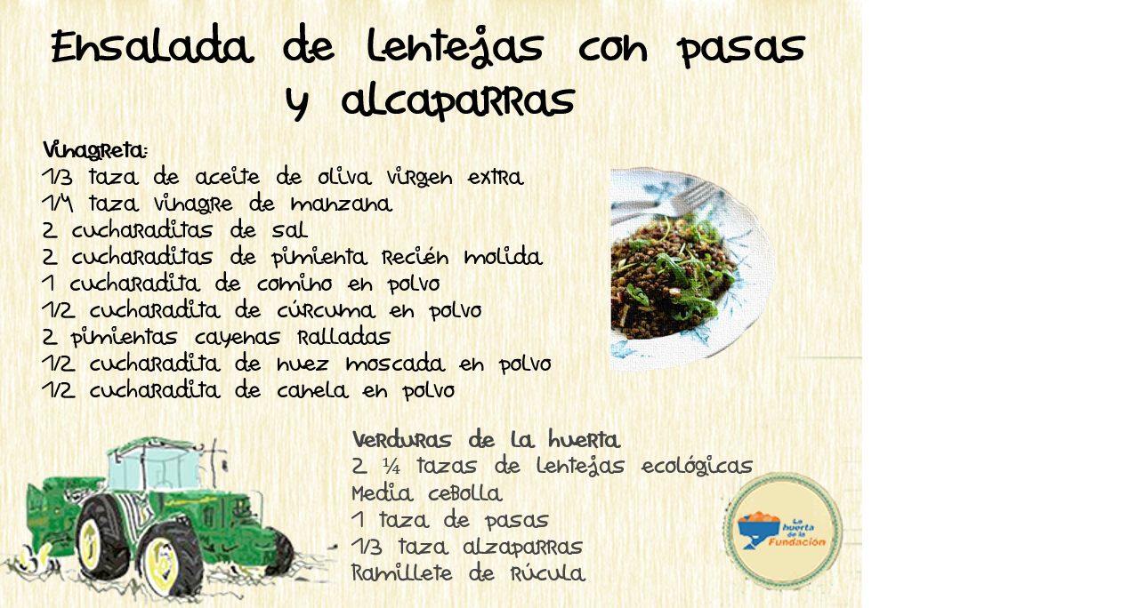 Receta ecológica. Ensalada de lentejas con pasas y alcaparras