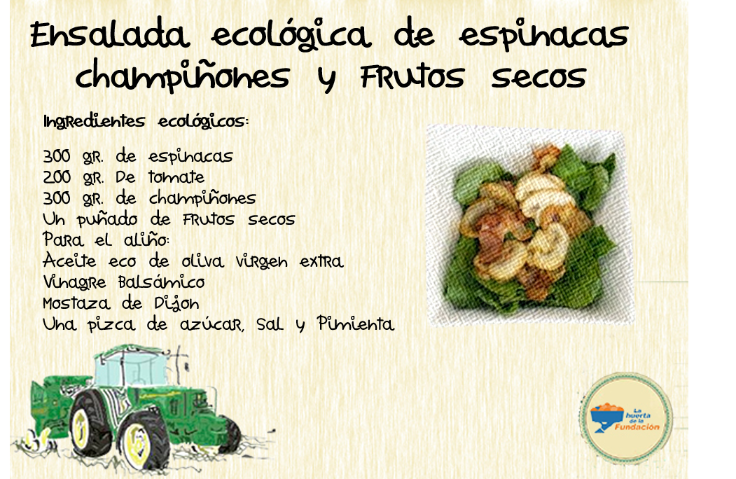 Receta ecológica: Ensalada templada de espinacas, champiñones y frutos secos