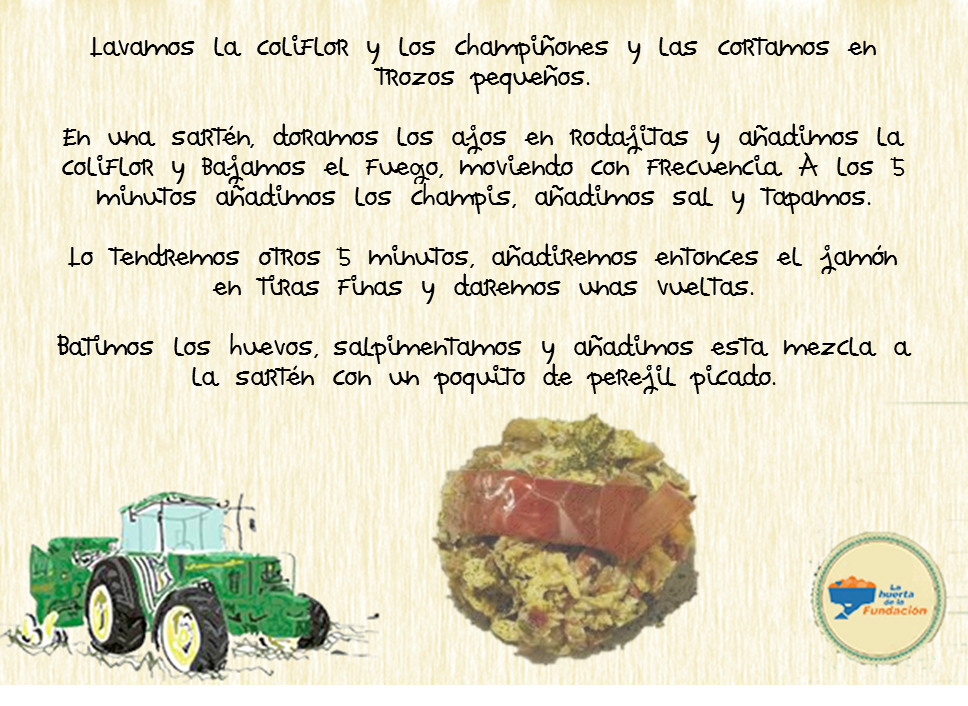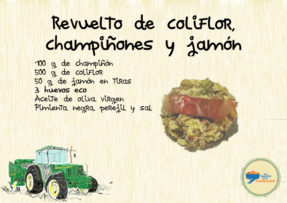 Home > Blog Revuelto de coliflor, champiñones y jamón 26/03/2014 | Discapacidad , eco-receta , Eco-recetas , Cestas ecológicas a domicilio , huerto ecologico , La huerta de la fundación por José Antonio Morena Pardo La Eco-receta de la semana os invita a disfrutar de los deliciosos de nuestras cestas, además os animamos a probarla con los huevos ecológicos que vienen en nuestra cesta desayuno.