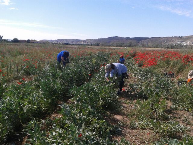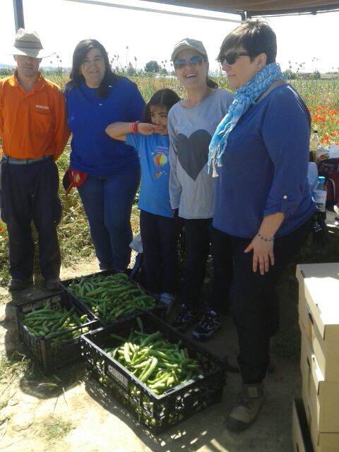 Para acabar la jornada, recolectamos algunas habas para completar nuestras cestas ecológicas de verduras. Pudimos probar algunas de premio.